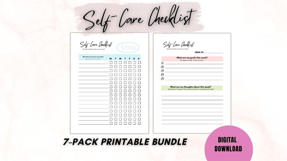 Self-Care Checklist, Self-Care Planner, Selfcare Journal Tracker, Wellness Planner Printable, Daily Well-being, Mindfulness Mental Health Kit